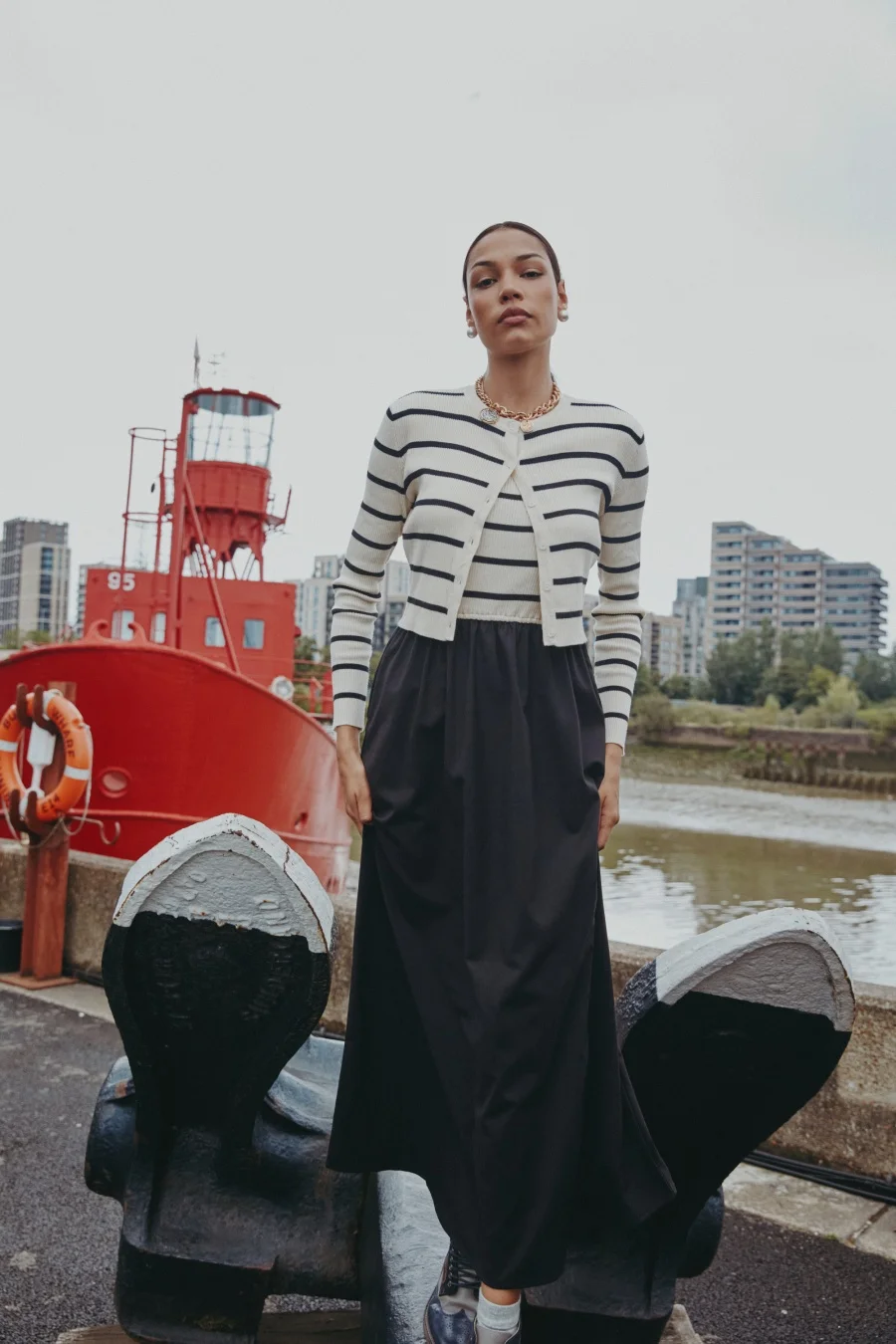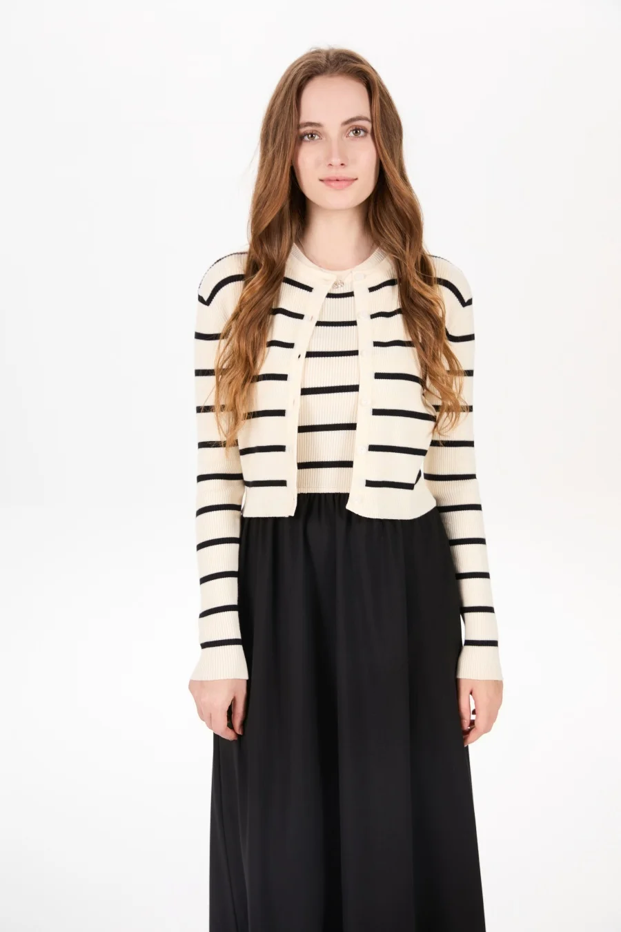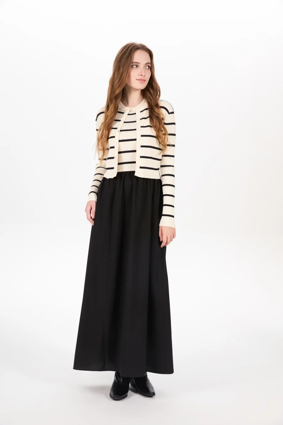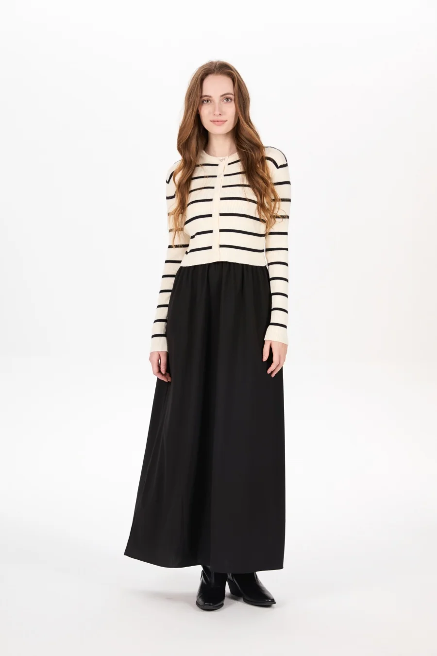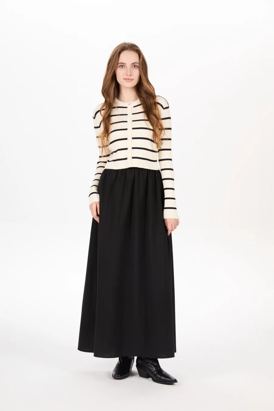 25AW Stripe Knitting Cardigan + Sleeveless Patch Dress